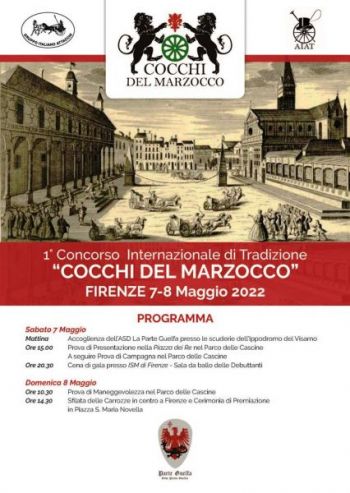 Teatro della manifestazione è la città culla dell’arte e della cultura che, per l’occasione, Domenica 8 Maggio, vedrà sfilare nelle vie e Piazze del Centro fino alla Piazza S. Maria Novella le carrozze partecipanti al Concorso. Vetture d’epoca in attacco singolo, in pariglia o in tiro a 4, attaccate a eleganti cavalli, con equipaggi adeguatamente abbigliati, che, in Firenze, faranno rivivere i tempi passati della Belle Epoque.