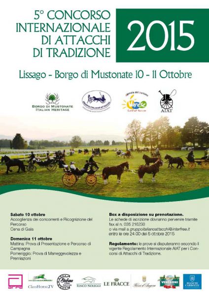 Domenica In campo Driver italiani e stranieri, Attacchi Singoli, Pariglie e Tiri a 4 per l’assegnazione del Trofeo di Tradizione GIA 2015 e del Trofeo Rossi d'Angera. A valutare gli equipaggi sarà una Giuria Internazionale composta da tre giudici AIAT. Presidente il Barone Christian de Langlade (FRA), affiancato da Pierre de Chezelles (FRA) e da Hartmuth Huber (GER).