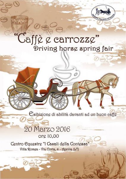 Sempre Domenica 7 nel Lazio, ad Aprilia, presso il Centro Ippico I Casali della Contessa, prende il via il Trofeo Primaverile SPORTATTACCHIGIA Centro in tre Tappe, che coinciderà con il circuito Caffè e Carrozze. Referenti David Giorgi e Paola Corsaro. Per le info clicca qui.