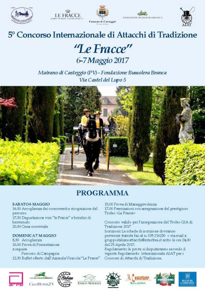 Sicuramente, in Italia, l’appuntamento più rilevante è il Concorso Internazionale di Attacchi di Tradizione a Mairano di Casteggio (PV). Nella splendida tenuta Bussolera Branca, fra le colline dell’Oltrepò in collaborazione con Le Fracce, famosa Azienda vitivinicola, va in scena la quinta edizione del prestigioso Concorso in calendario AIAT (Association Internationale d’Attelage de Tradition).Per tutte le info clicca qui.