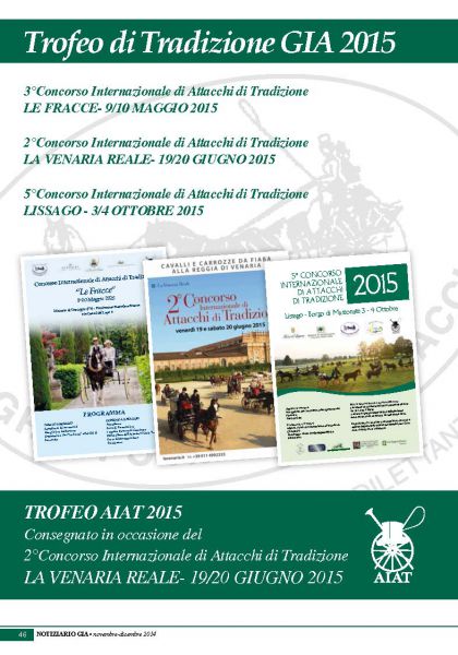 In conclusione la Cerimonia di Premiazione: il Trofeo LE FRACCE verrà attribuito all’Attacco migliore nella Prova di Presentazione, mentre premi in oggettistica toccheranno ai primi classificati di ogni Categoria. Il Concorso è valido per l’assegnazione del Trofeo di Tradizione GIA 2015.