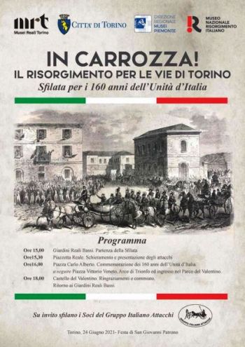 Promossa dai Musei Reali di Torino, dal Museo del Risorgimento, dalla Direzione dei Musei Regionali del Piemonte in collaborazione con La Città di Torino, la manifestazione si svolgerà dalle ore 15.00 alle 18.30 . L’invito al Gruppo Italiano Attacchi è stato particolarmente gradito e opportuno per sottolineare che proprio le tre carrozze delle tre icone del Risorgimento, Vittorio Emanuele, Garibaldi e Cavour, sono attualmente esposte nei Musei cittadini e visitabili.