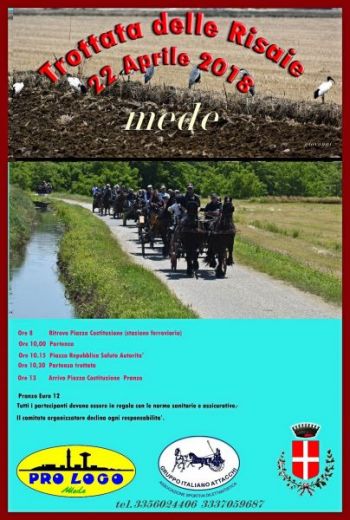 Domani il via alle Trottate in Carrozza fra le Risaie della Lomellina. Partenza da Mede per proseguire lungo le strade poderali fra le risaie allagate. Ci aspetta una splendida giornata di sole. Appuntamento in Piazza Costituzione (stazione Ferroviaria) e partenza alle ore 10:00 verso il centro.