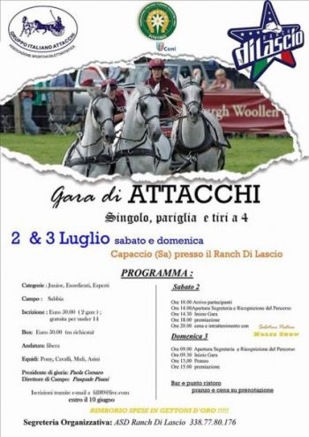 - Domenica 3 Luglio Circuito GIA CAFFE' E CARROZZE nel Lazio ad Aprilia, al Circolo Ippico I Casali della Contessa,organizzato dai nostri Soci David Giorgi e Deris De Gasperi di Passioni Equestri.