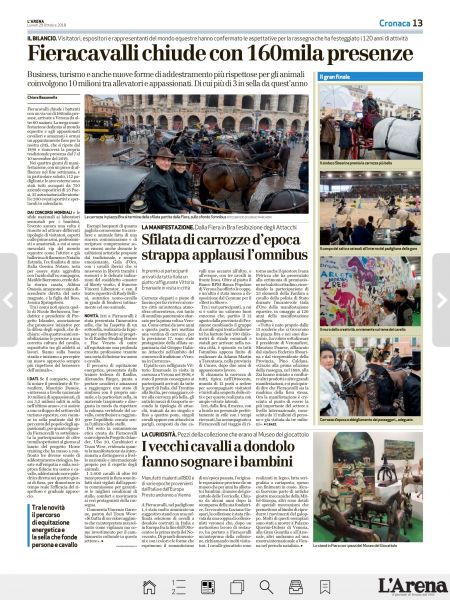 Sempre presente "con stile" il Gruppo Italiano Attacchi in Fieracavalli a Verona, sia con gli ATTACCHI DI TRADIZIONE che hanno dato vita alle Sfilate in città (Venerdì, Sabato e Domenica) e al IX Concorso Verona in Carrozza, sia con l’Esposizione degli Omnibus a Cavalli all’interno di CASA GIA, un grande spettacolo per tutti i visitatori.