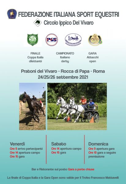 Non dimentichiamo, ovviamente, un altro titolo che verra' consegnato ai Pratoni del Vivaro nel weekend tra il 24 e il 26 Settembre. In questo prestigioso contesto si svolgera' la Finale della Coppa Italia Dilettanti FISE a cui parteciperanno anche concorrenti GIA che si sono qualificati nelle Tappe disputate nei mesi di Maggio, Giugno e Luglio del Trofeo Amatoriale GIA.